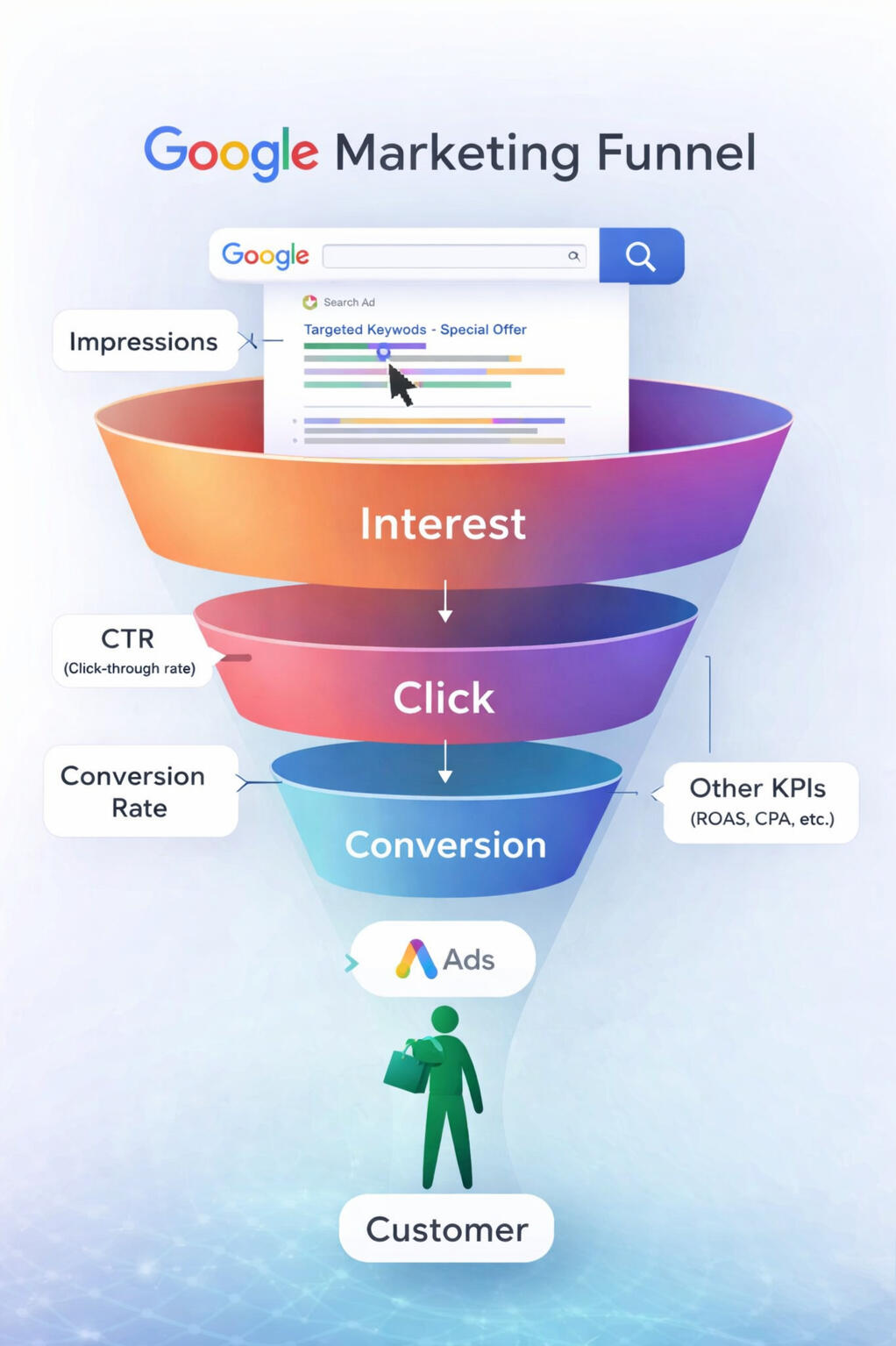 With Google Ads, we can:Show up above your competitorsGet clicks from people ready to buyTurn those clicks into real customersMy system is built around a proven Google Ads funnel:👉 Interest – Your ad appears at the top when people search